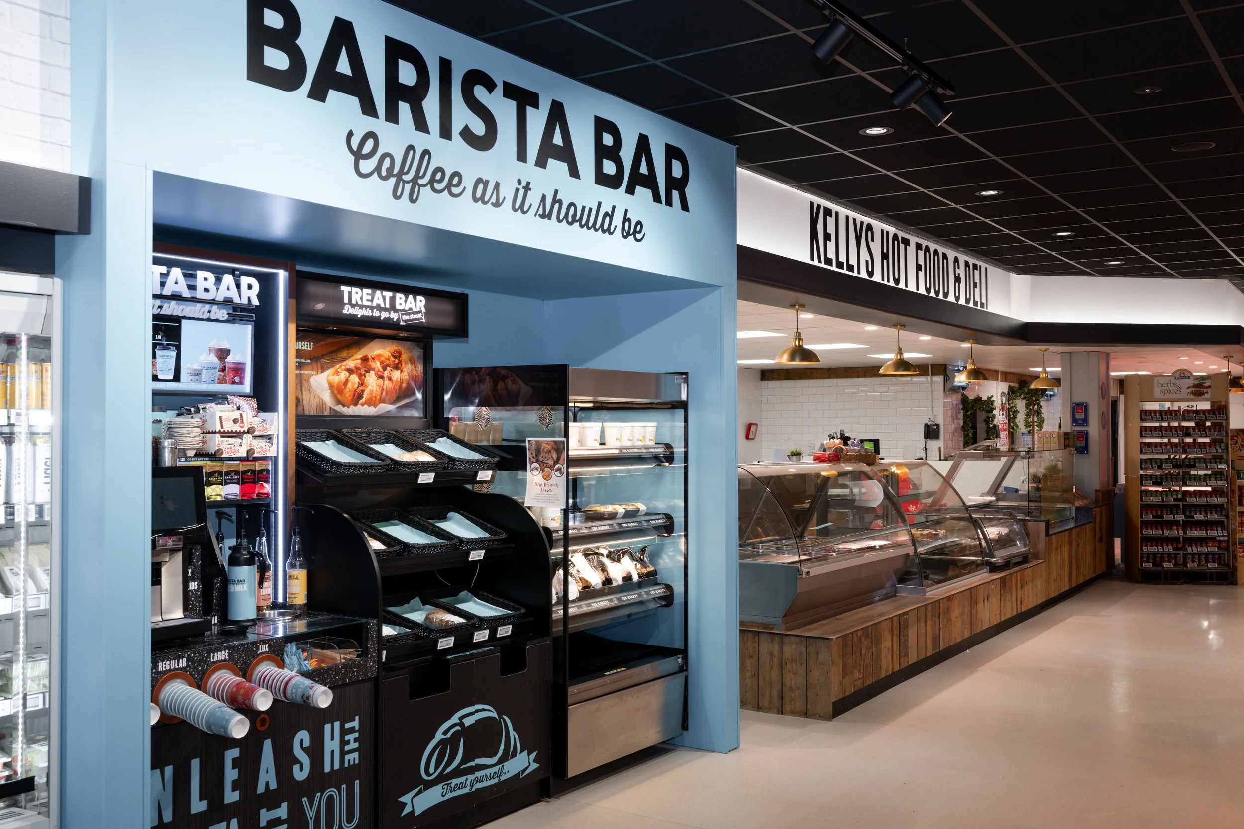 The interior design of this large grocery store demonstrates how thoughtful, budget-conscious updates can significantly elevate a space’s overall feel. Working within the constraints of a minimal budget, the focus on strategic changes that improved the store's flow and enhanced its aesthetic appeal. By reworking the layout, the store now offers a more intuitive shopping experience, guiding customers effortlessly through the aisles. A key sustainability-driven element of the project was the creative reuse of materials. Reclaimed timber, previously located above the fridges, was repurposed to create counter fronts and surrounds for the fridges, giving these areas a fresh yet cohesive look. This not only reduced costs but also added a sense of warmth and character to the interiors.